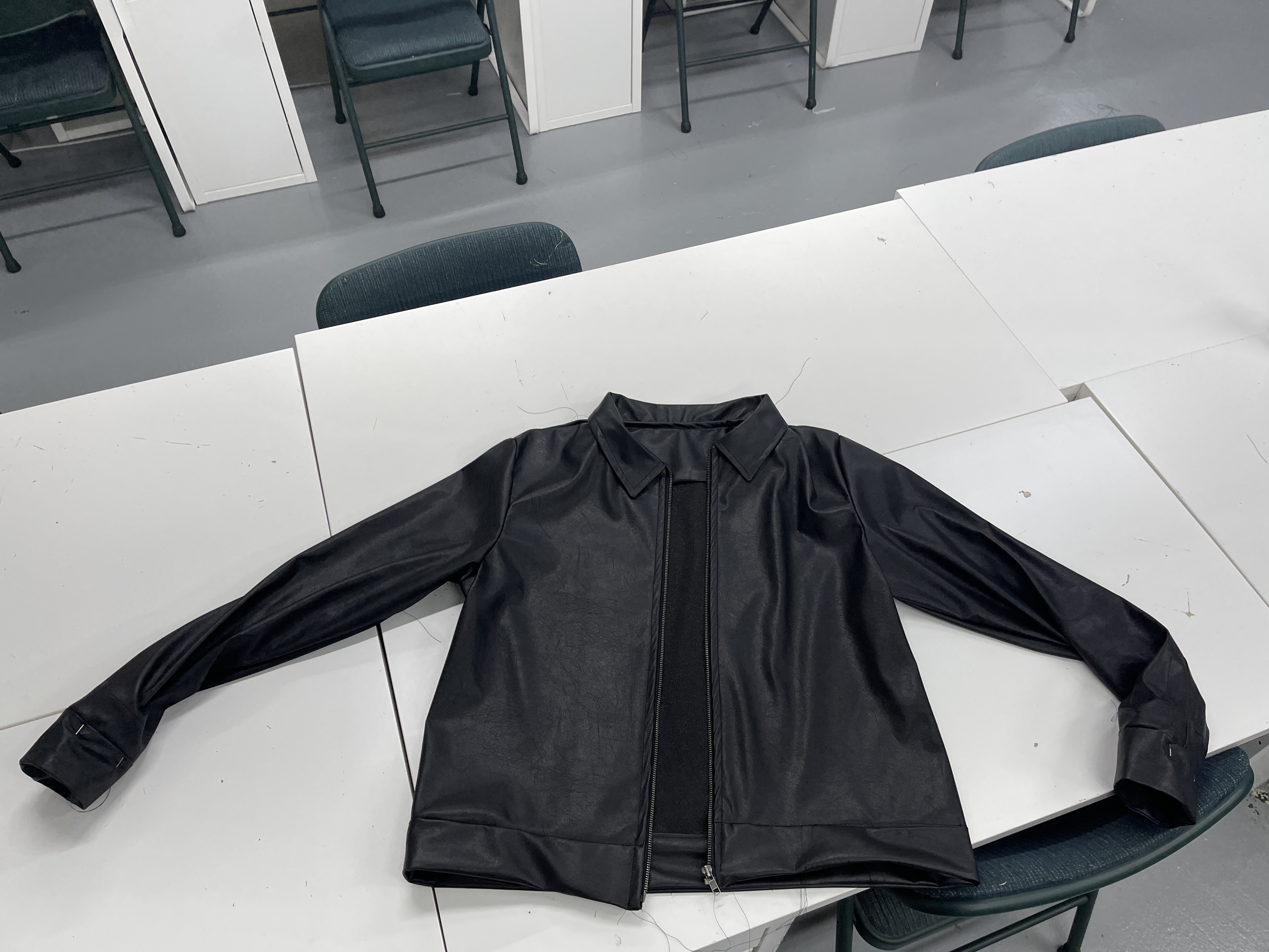 This jacket is the first piece of a multimedia clothing line that integrates fashion and technology. I used a micro arduino to controll LED lights that are embeded into the fabric. In addition I added a rechargeable battery hidden in the collar. I am also working to create a wireless charging system with a powered hanger.